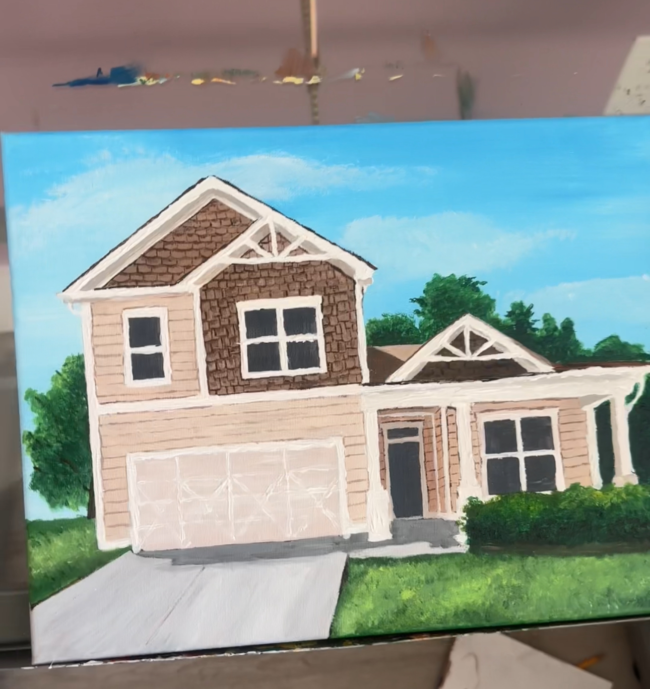 But the beauty doesn’t stop there. Rochelle also transforms homes into lasting memories – painting the places that once held laughter, milestones, and years of love. When a beloved house must be left behind – a painted portrait preserves its story forever – a treasure to hold onto even after the keys are gone.